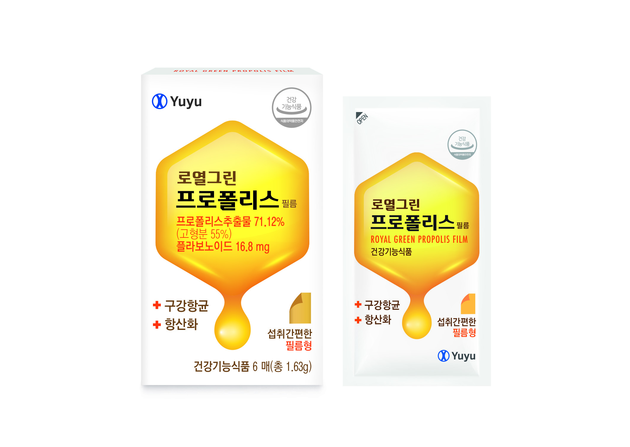 유유제약이 필름 제형으로 높은 흡수율과 간편한 섭취, 편리한 휴대가 가능한 건강기능식품 `로열그린 프로폴리스 필름`을 출시했다.