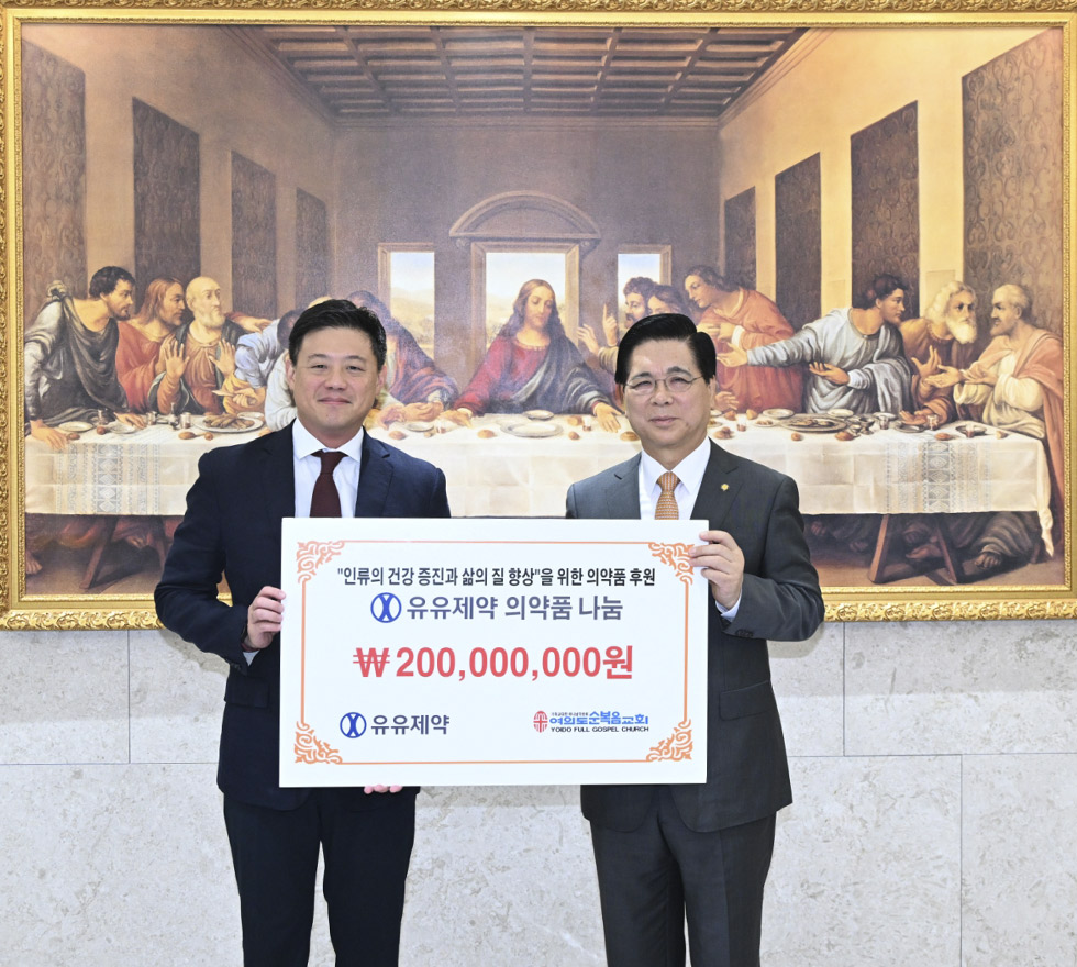 유유제약은 총 2억원 상당의 의약품을 여의도순복음교회 산하 순복음선교회에 기부했다. 이번 지원은 순복음선교회가 의료 소외계층을 대상으로 해외 의료봉사활동에 필요한 의약품을 유유제약에 요청함에 따라 이뤄졌다.