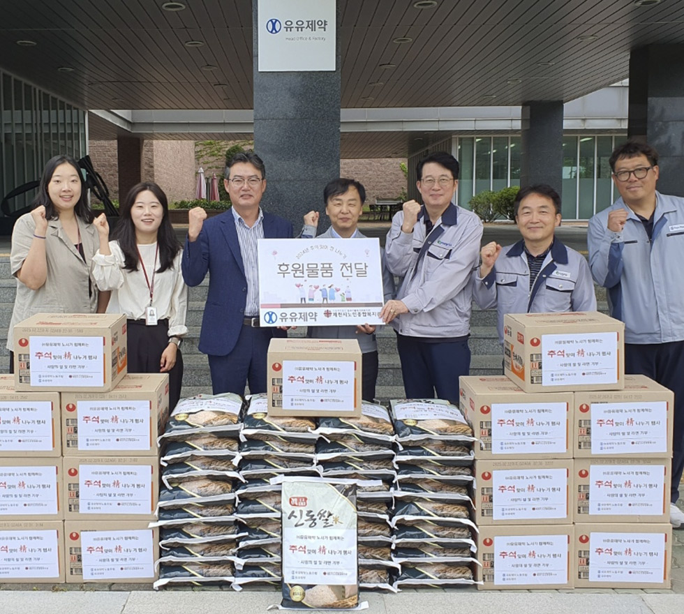 유유제약(대표이사 유원상, 박노용)과 유유제약 노동조합(위원장 이장훈)이 추석 명절을 앞두고 충북 제천 지역 소외계층 및 독거 어르신들에게 전달될 생필품을 기부했다.