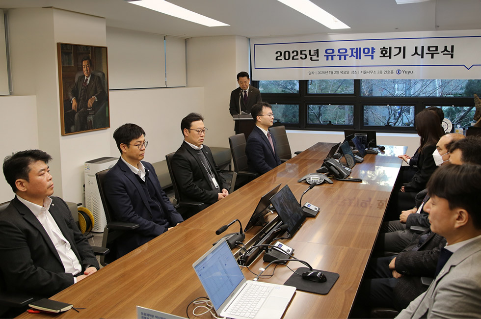 유유제약이 2025년 시무식을 개최하고 전 임직원이 함께 올해 경영목표를 공유하는 시간을 가졌다.