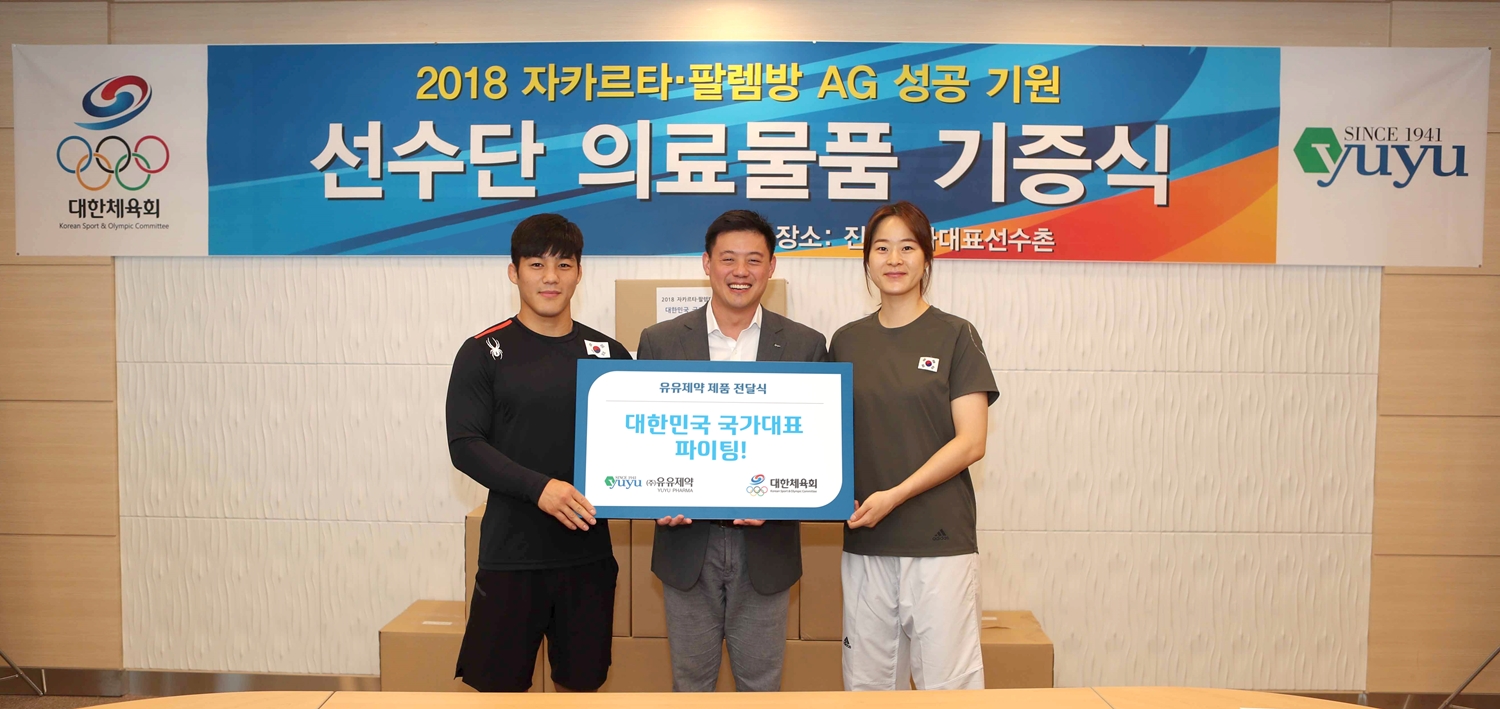 유유제약은 충북 진천 국가대표 선수촌에서 비나폴로, 베노플러스겔, 유가드액 등 의약품 3종 1,500 세트 기부에 대한 전달식을 진행했다. 전달된 의약품은 아시안게임에 출전하는 모든 종목 선수들에게 지급되며 오는 10월 아르헨티나 부에노스아이레스에서 개최되는 유스올림픽(14∼18세 선수들이 참가하는 청소년 올림픽) 국가대표 선수단에도 지원된다.