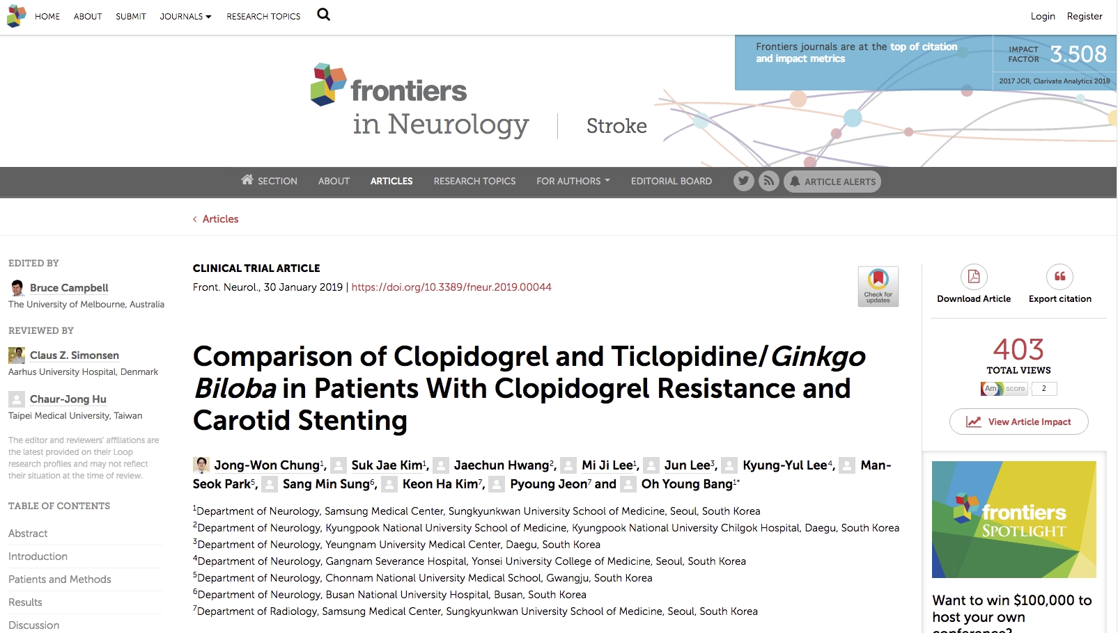 이번 연구는 2014년부터 2017년까지 4년간 삼성서울병원, 영남대병원, 강남세브란스병원, 전남대병원, 부산대병원, 삼성창원병원 등 6개 병원에서 함께 진행됐다. 총 42명의 환자를 대상으로 경동맥 스텐트 삽입술 후 24주간 해당 약물을 투여한 결과를 뇌 MRI, 경두개 초음파 모니터 등 포괄적인 연구방법을 토대로 작성됐다.