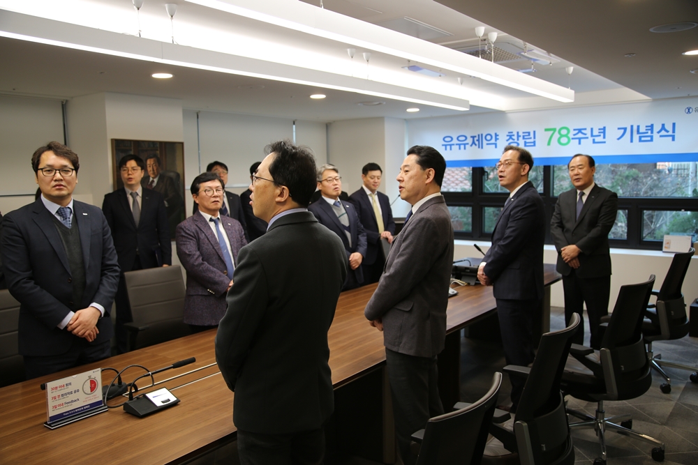유원상 부사장은 기념사를 통해 “지난 78년간 창업이념인 인류의 건강증진과 삶의 질 향상을 위해 묵묵히 정진해온 임직원의 노고에 감사드린다. 오픈 이노베이션을 통한 신약개발 등 지속적 경영혁신으로 매해 성장하는 유유제약을 만들자”라고 말했다.