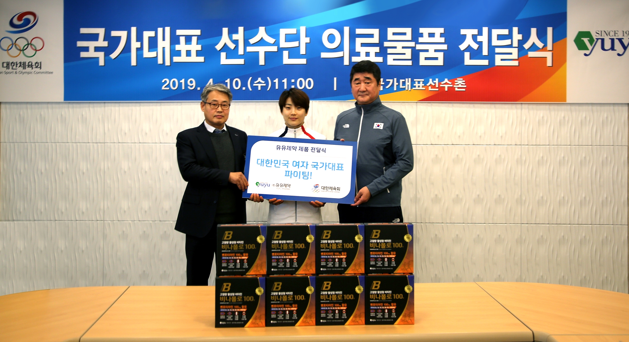 유유제약(대표이사 유원상)이 대한민국 국가대표 선수단에 의약품을 기부했다.