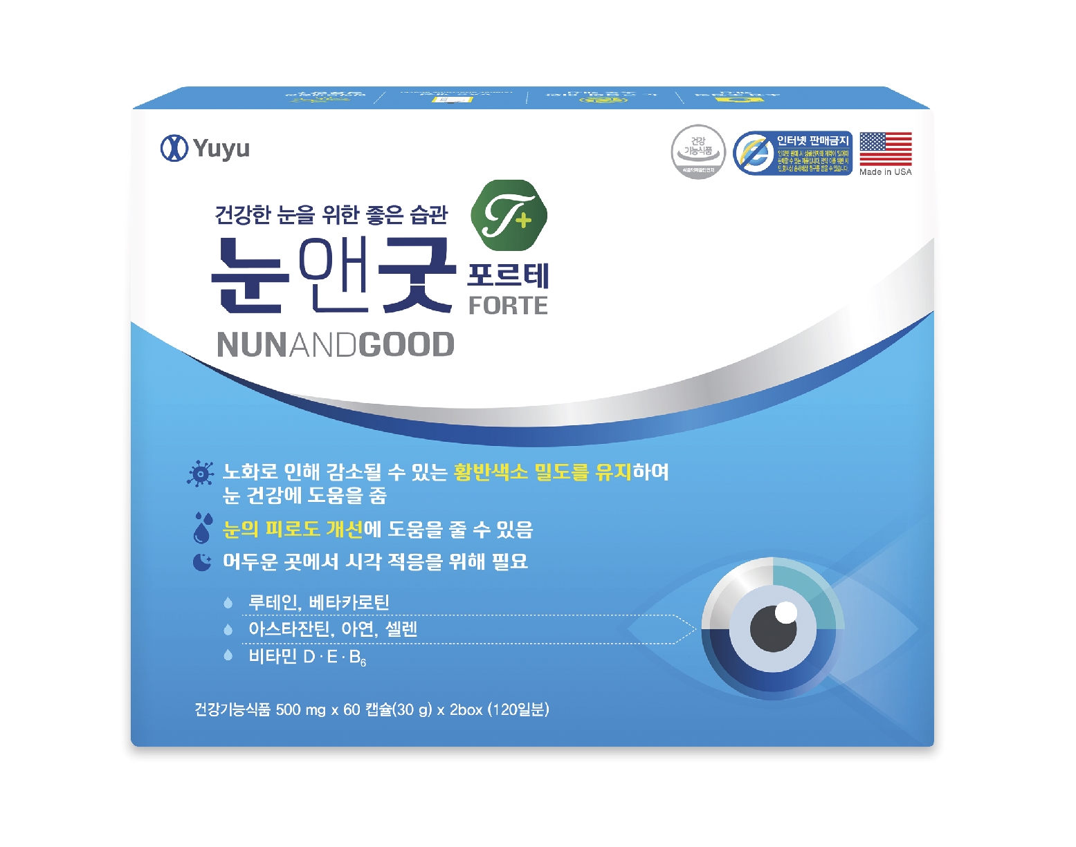 유유제약은 루테인, 아스타잔틴, 베타카로틴, 빌베리 등 눈 건강에 도움을 줄 수 있는 다양한 성분들로 구성된 건강기능식품 ‘눈앤굿 포르테’를 출시했다.