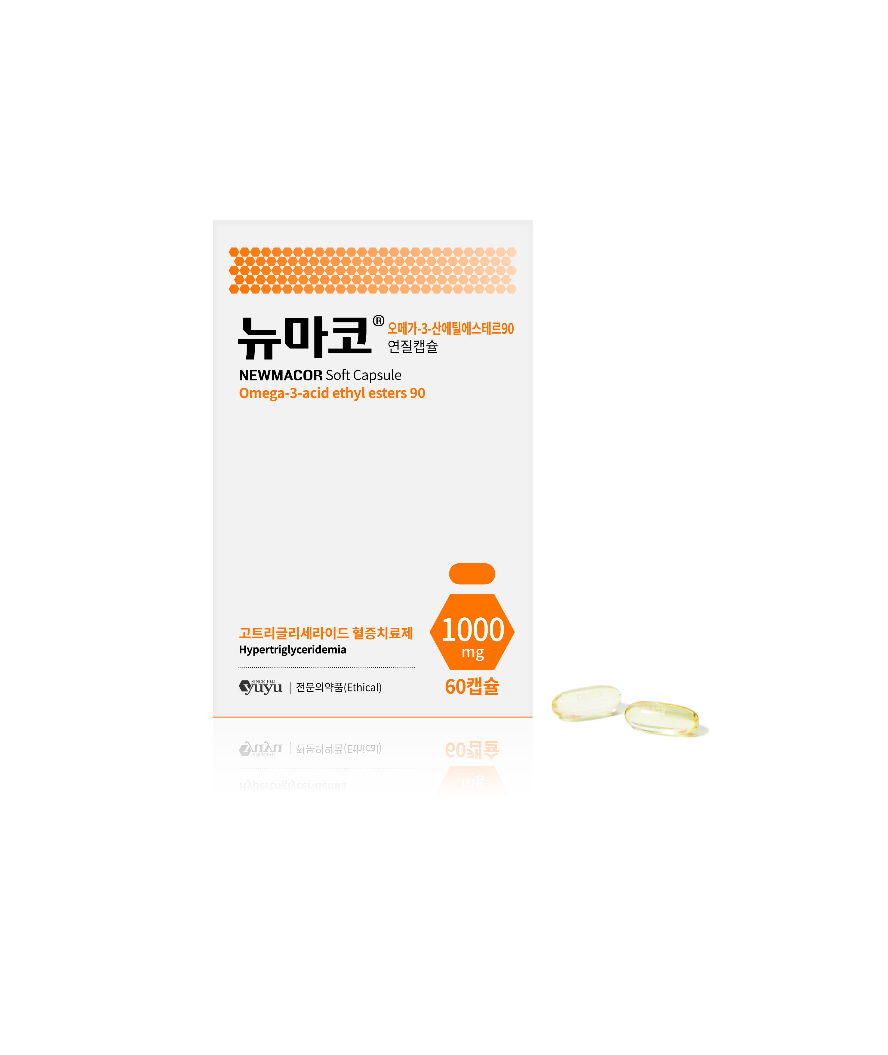 뉴마코의 주성분인 오메가3에 함유되어 있는 EPA와 DHA는 항혈전, 항부정맥, 항죽종 형성 효과와 항염증 및 내피세포 보호효과가 있어 혈관 질환 발병의 위험성을 감소시킨다.